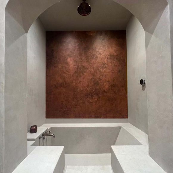 Plaster effect finish, no visible grains, suitable for walls, bathrooms and low traffic floors. Perfect for creating a minimalist design.
